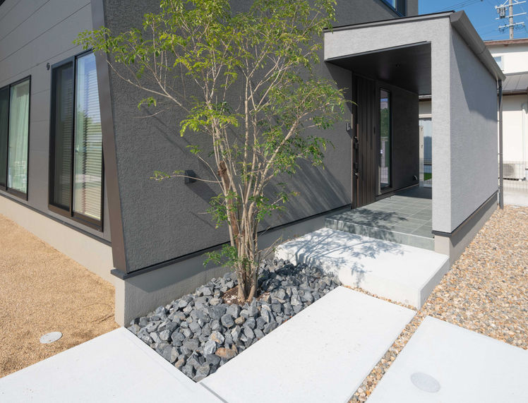屋根付きポーチは5帖の広さがあり、自転車・三輪車・バイクなど雨ざらしにならないのは嬉しい仕様です。